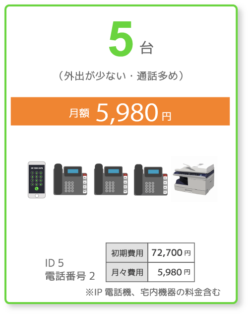 電話機やアプリごとにIDが付帯され、一つの電話番号を複数人で利用することが可能です。電話番号は追加することも出来ます。