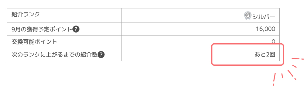 ※その月の獲得ポイントは、紹介条件を満たしていない場合、プレゼント対象外になる場合がございます。