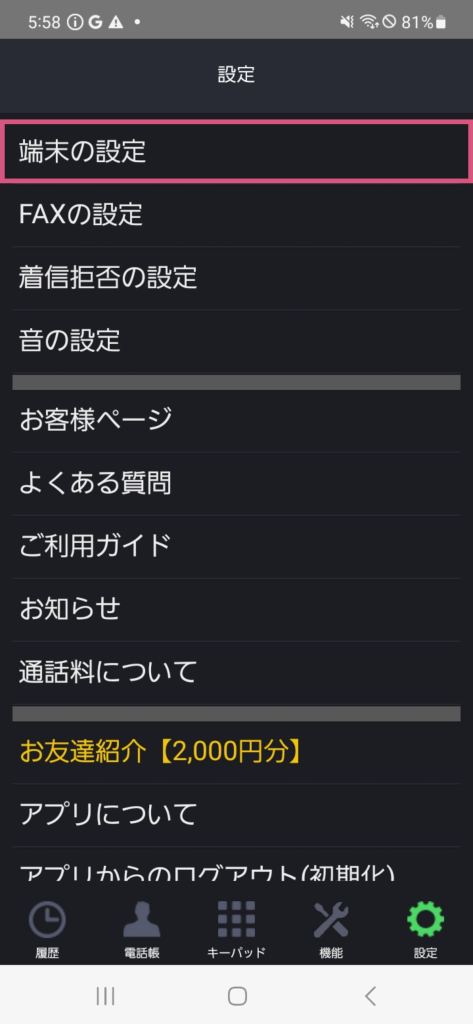 Android端末は機種ごとに音声やマイクの設定が異なりますが、音の設定で調整したいただけます。