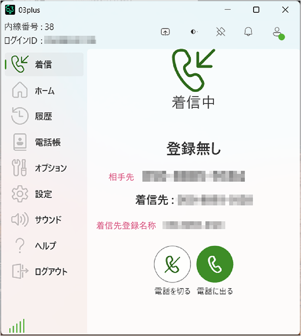 Aさんのアプリ操作方法:お客様からの電話を「電話に出る」をクリックして応答します。