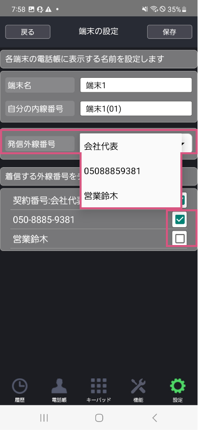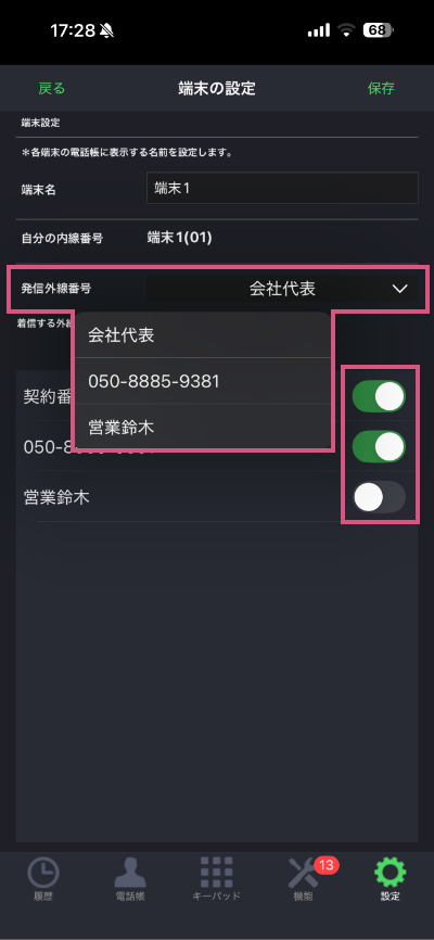 発信外線番号を変更する事も可能です。