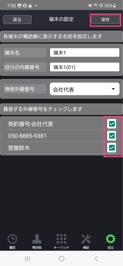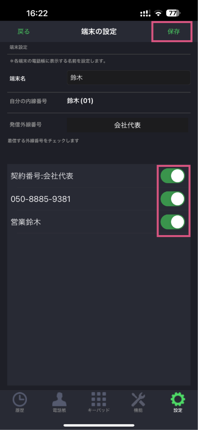 ※画面右上「保存」をタップして、設定を完了させます。