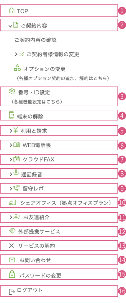 「ご契約者様情報」「ご契約内容」「電話番号・ID・オプション情報」を確認できます。
