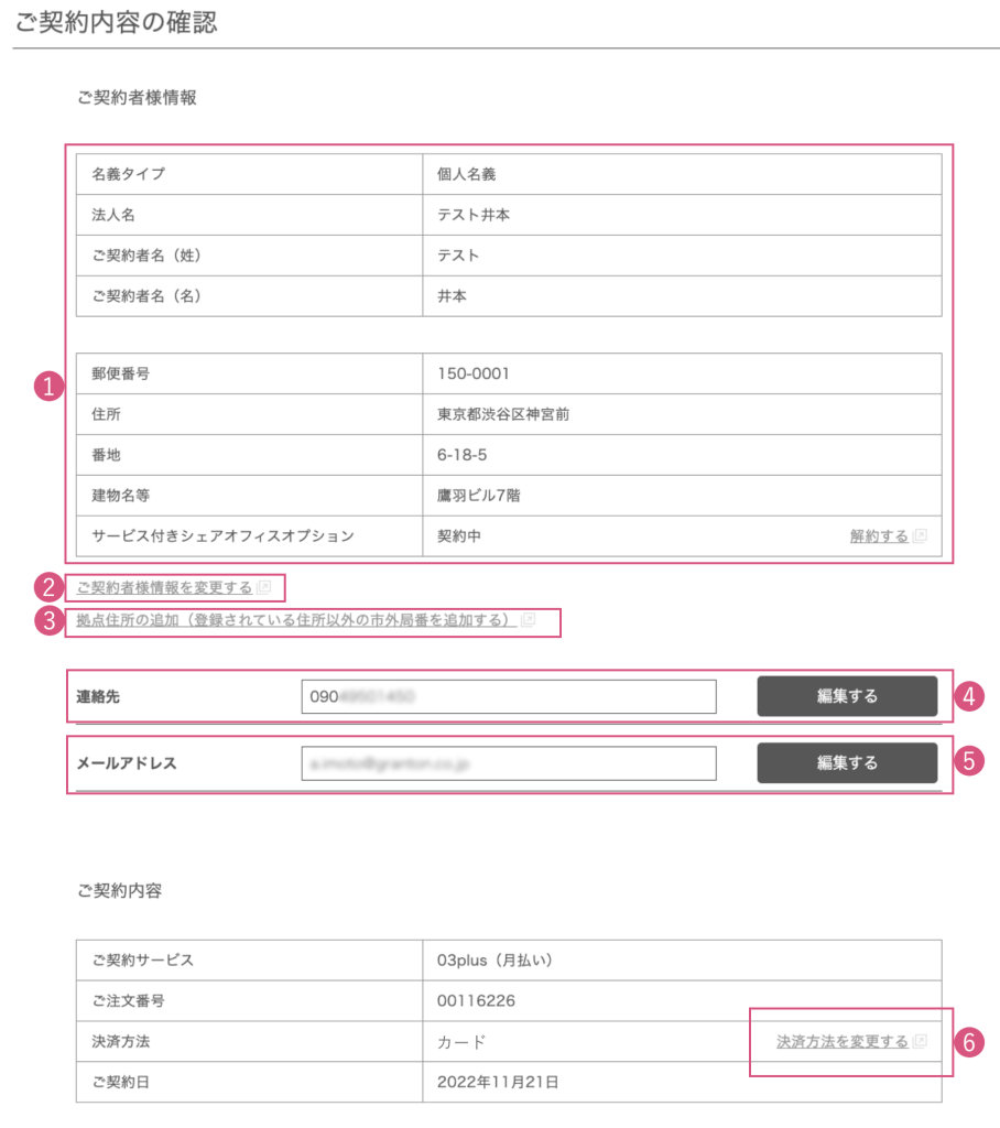 ご契約内容の確認やご連絡先の変更、住所変更、名義変更、追加拠点申請を行います。