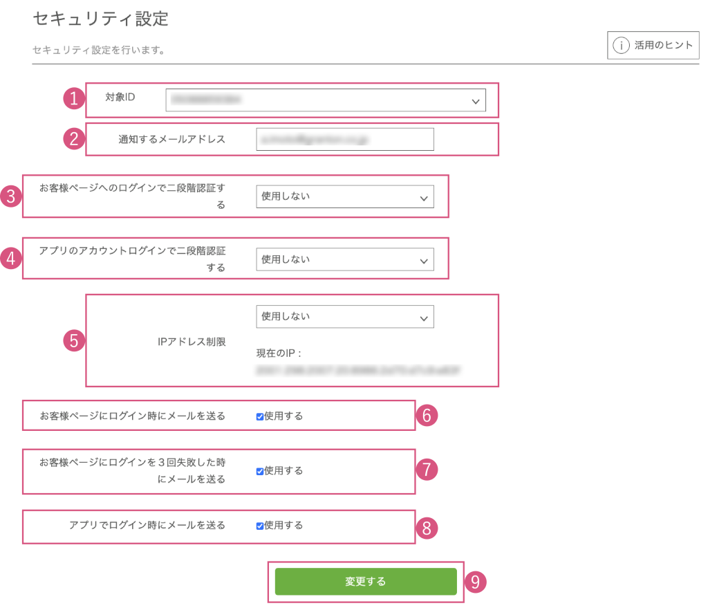 対象IDごとに、ログイン通知や不正アクセス対策の設定が可能です。