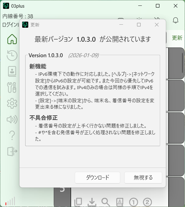 ソフトフォンアプリをアップデートする場合、一度アプリを閉じて再起度します。