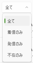 履歴画面の[全て]のプルダウンを開くと、「着信のみ」「発信のみ」「不在のみ」を絞り込んで表示させることが可能です。