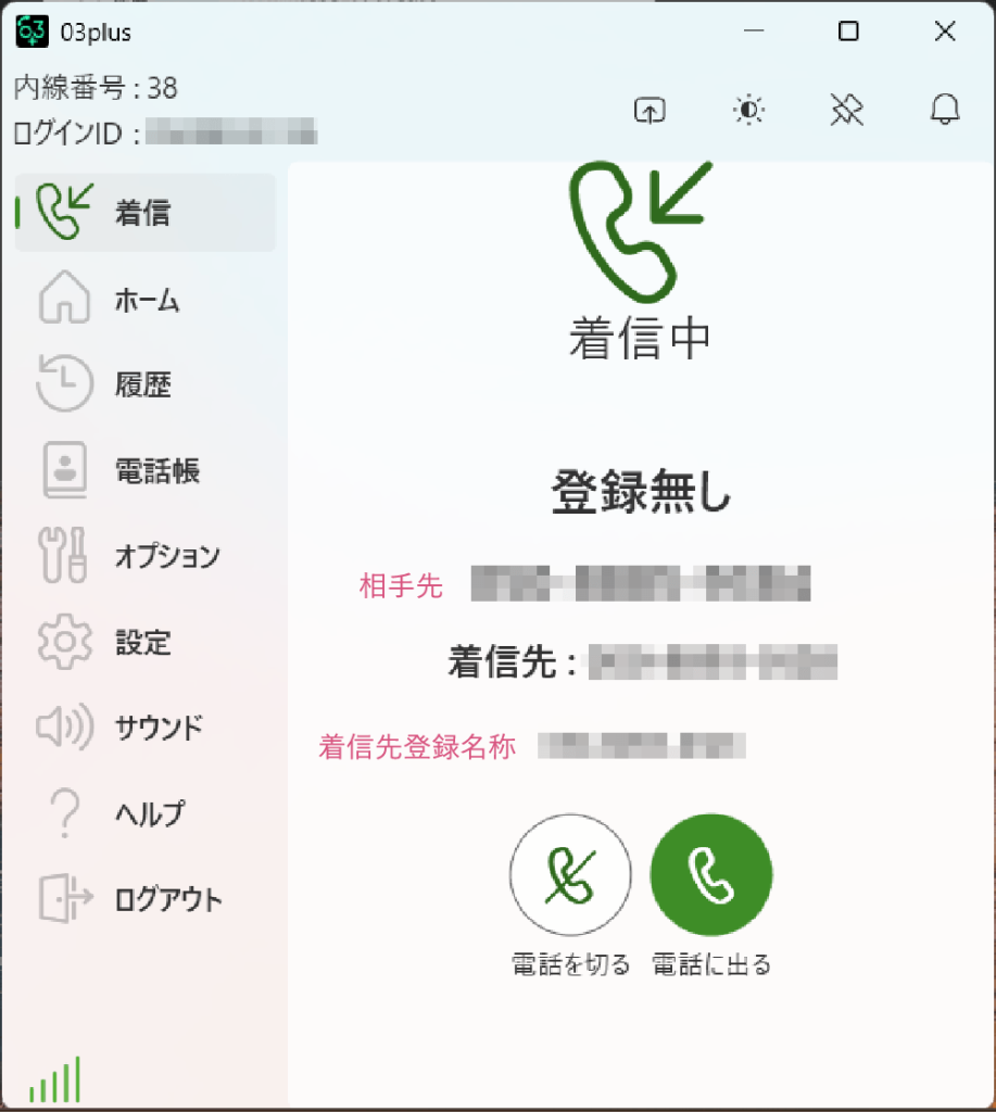 Aさんのアプリ操作方法:お客様からの電話を「電話に出る」をクリックして応答します。