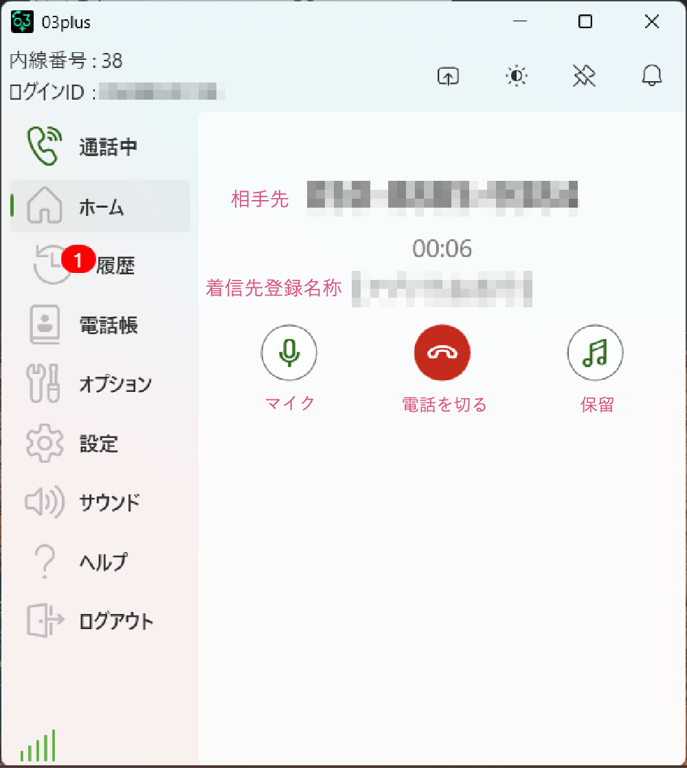 ソフトフォンでパーク保留操作をしたい場合、下記の例を参考に操作してください。