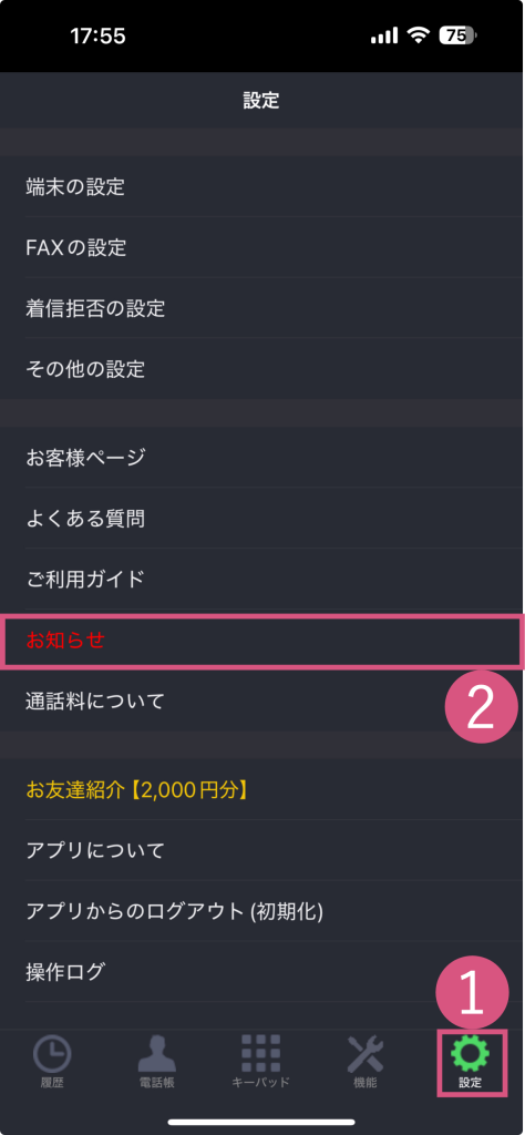 お知らせリストが表示されるので、タップして確認します。左スワイプで削除も可能です。